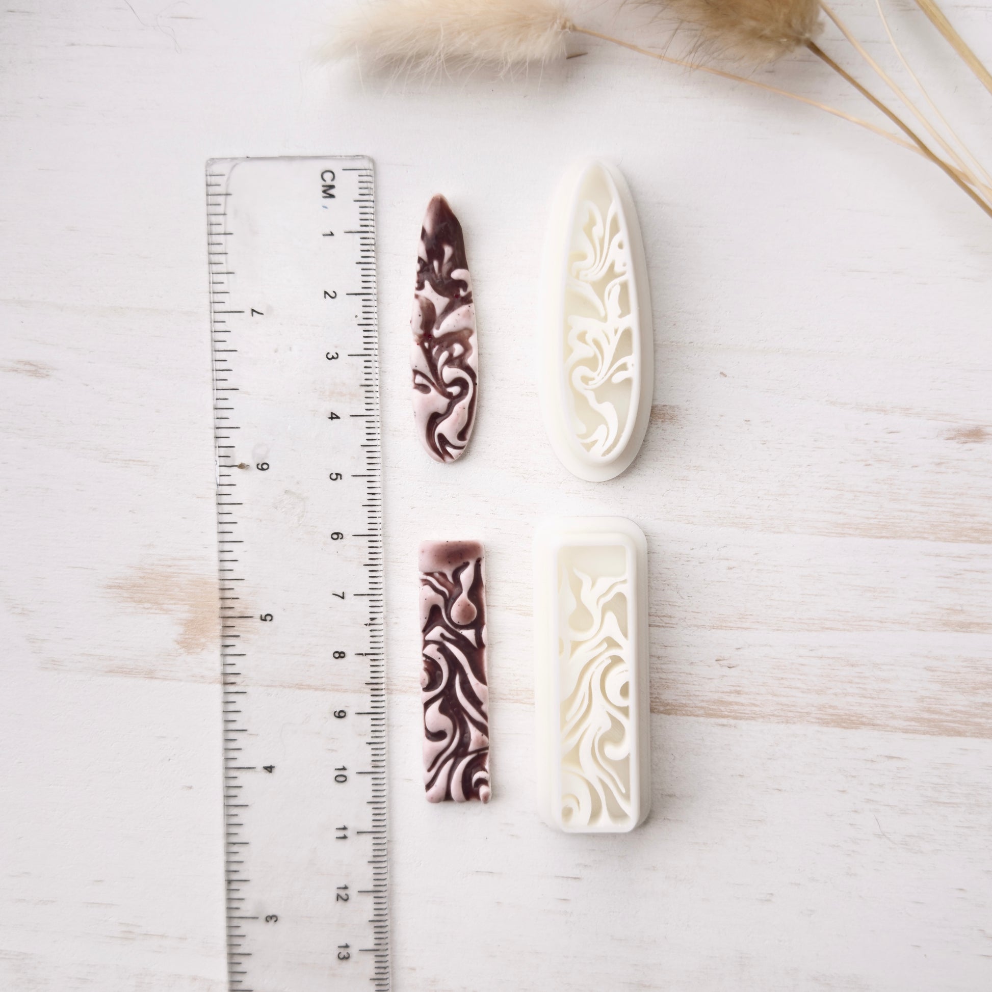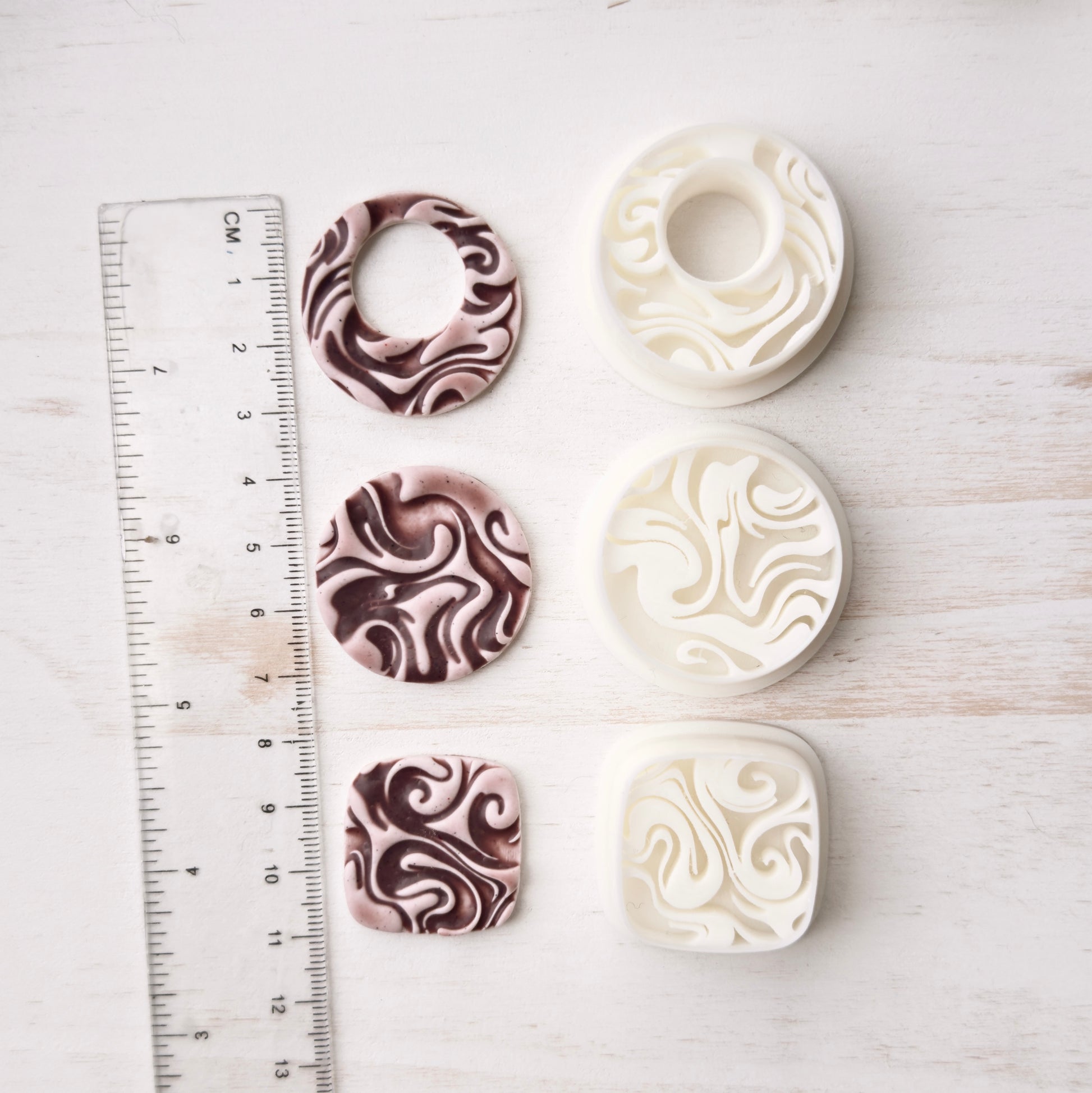 Gently press into clay, slightly wiggle the cutter and lift to remove. Edges can be smoothed with your fingertips or sanded after baking. I recommend sanding for the cleanest finish. Corn starch is a great way to help from clay sticking to your cutter, especially a cutter with small details. Working on a glass sheet or tile is recommended to keep the clay from sticking to your cutter, also.