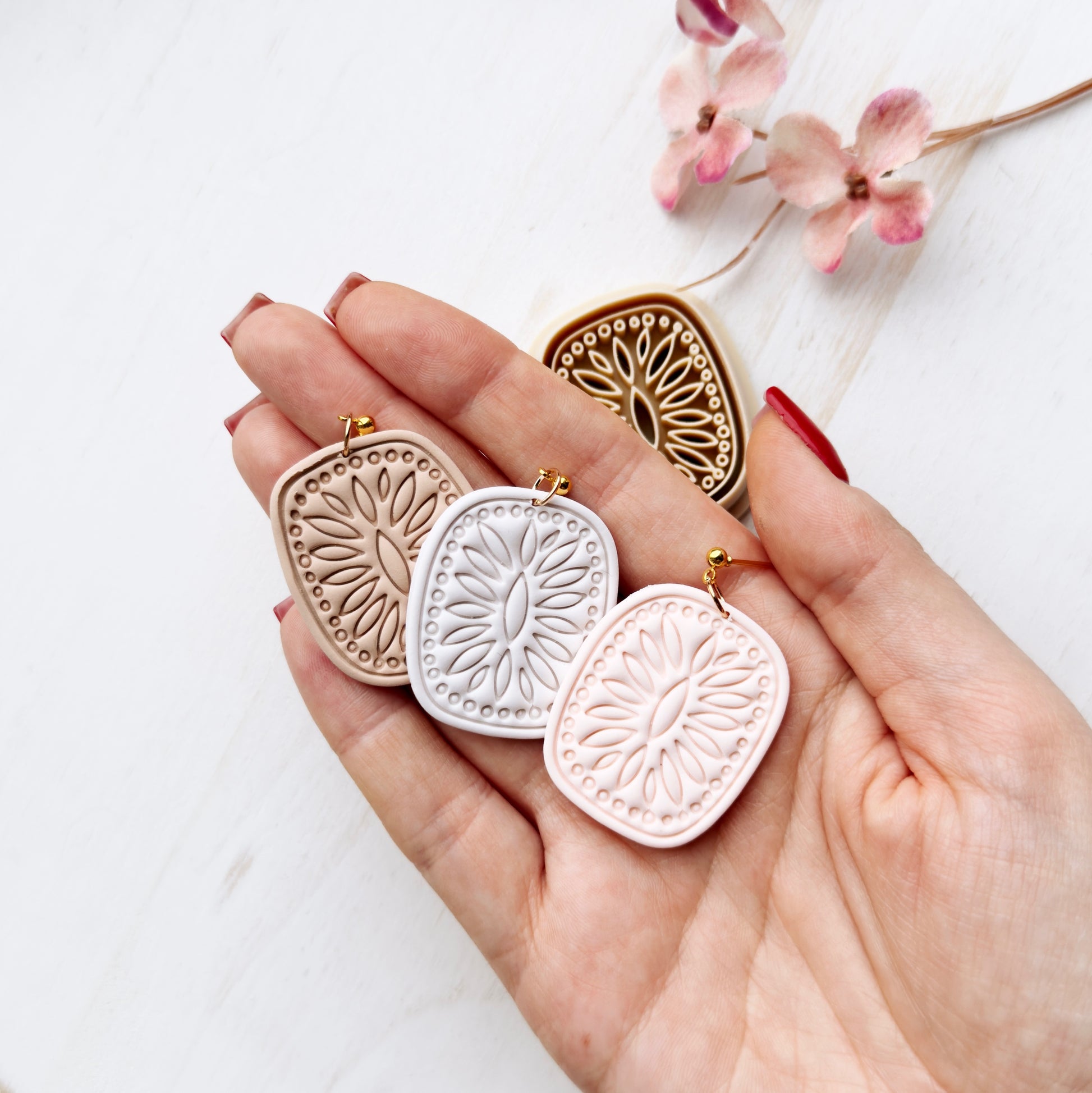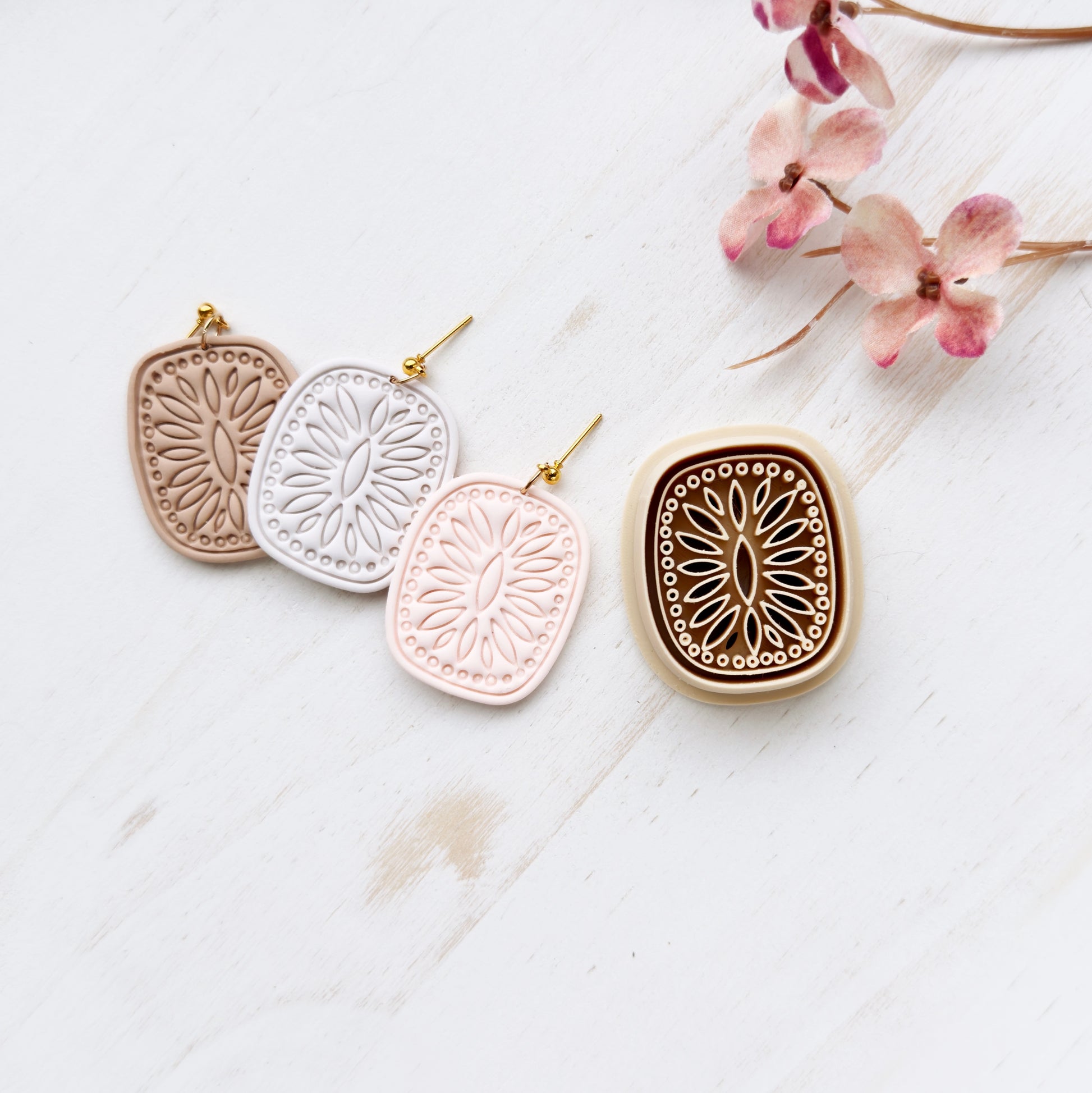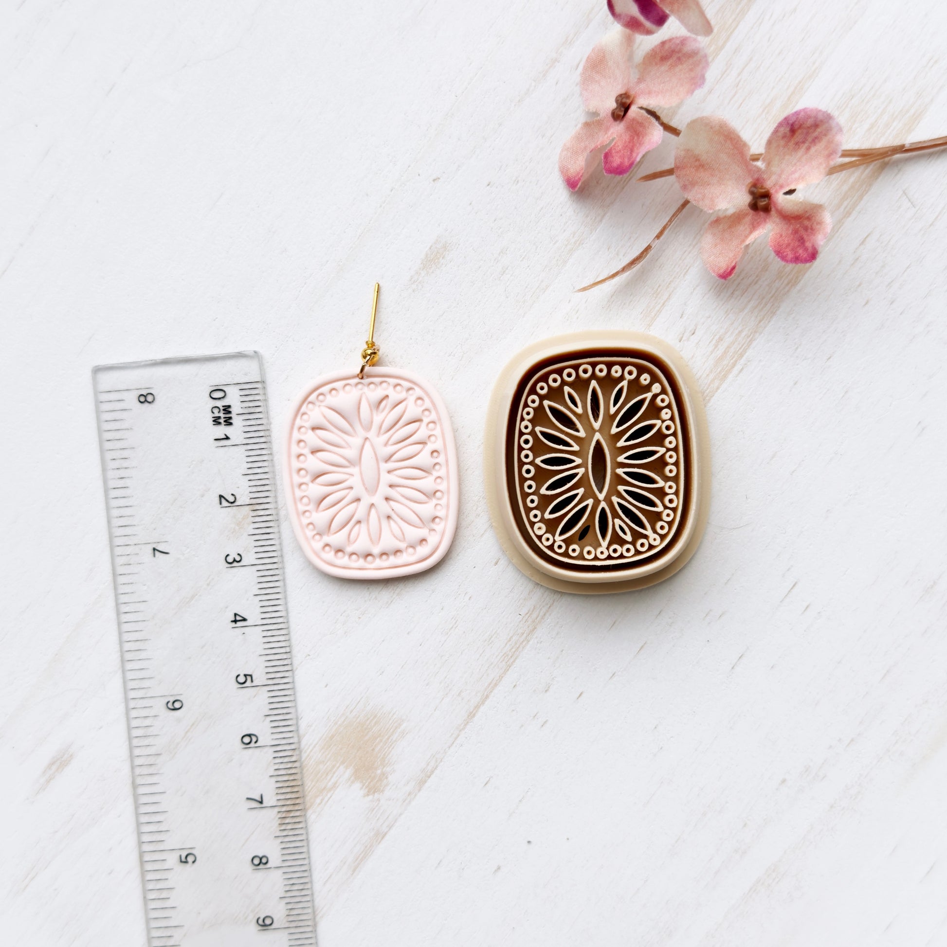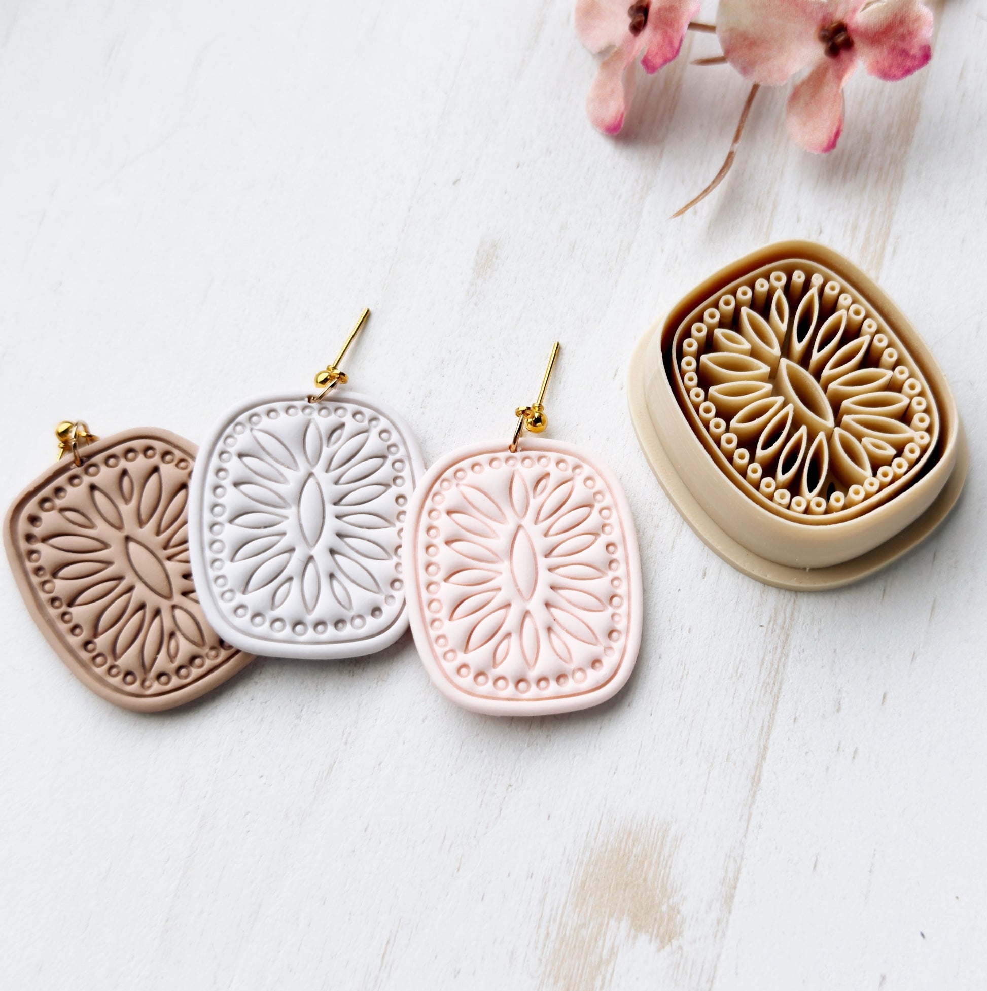 Gently press into clay, slightly wiggle the cutter and lift to remove. Edges can be smoothed with your fingertips or sanded after baking. I recommend sanding for the cleanest finish. Corn starch is a great way to help from clay sticking to your cutter, especially a cutter with small details. Working on a glass sheet or tile is recommended to keep the clay from sticking to your cutter, also.