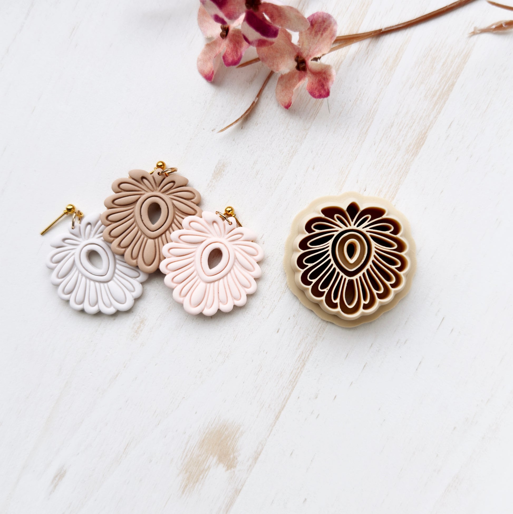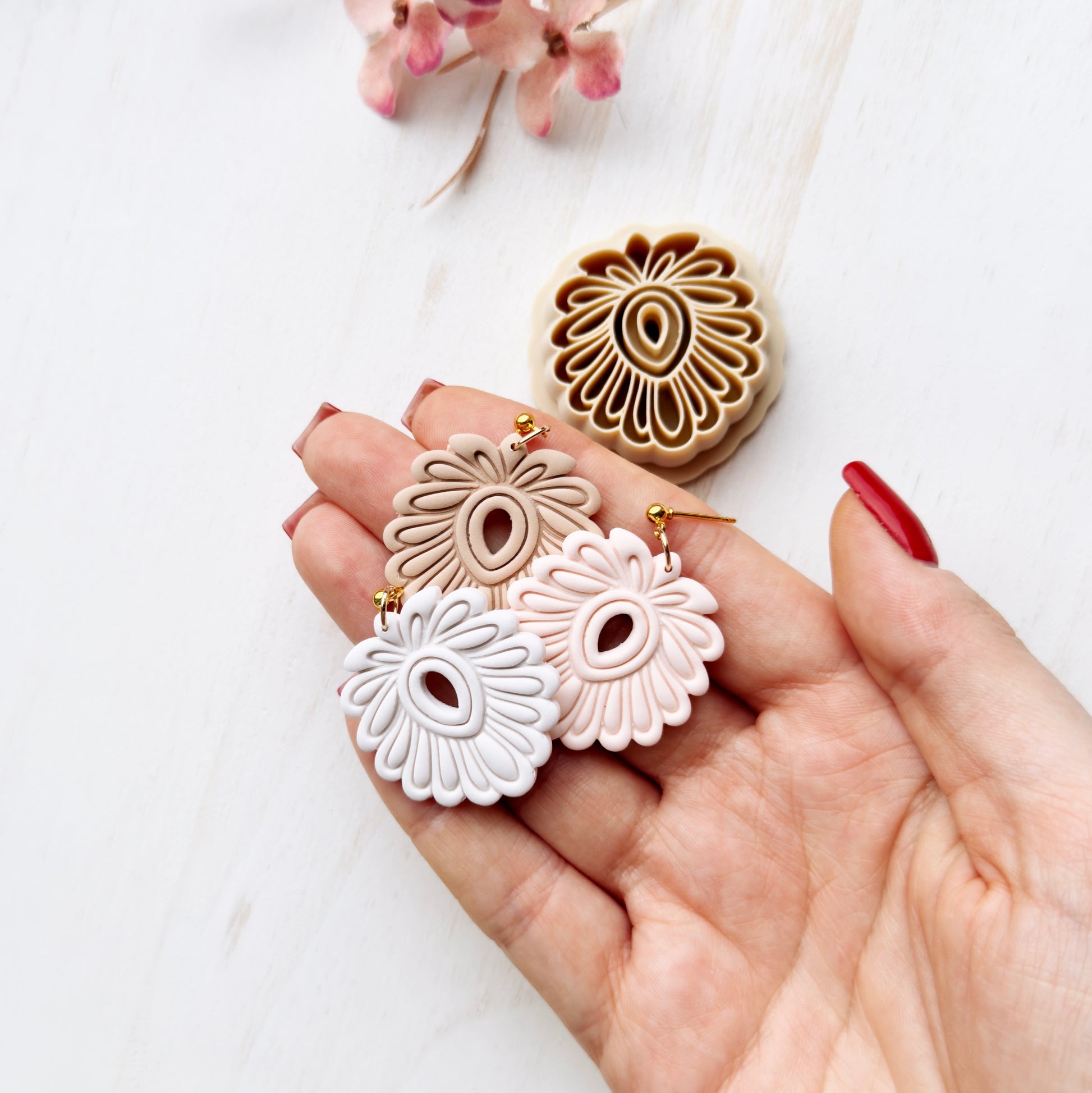Gently press into clay, slightly wiggle the cutter and lift to remove. Edges can be smoothed with your fingertips or sanded after baking. I recommend sanding for the cleanest finish. Corn starch is a great way to help from clay sticking to your cutter, especially a cutter with small details. Working on a glass sheet or tile is recommended to keep the clay from sticking to your cutter, also.