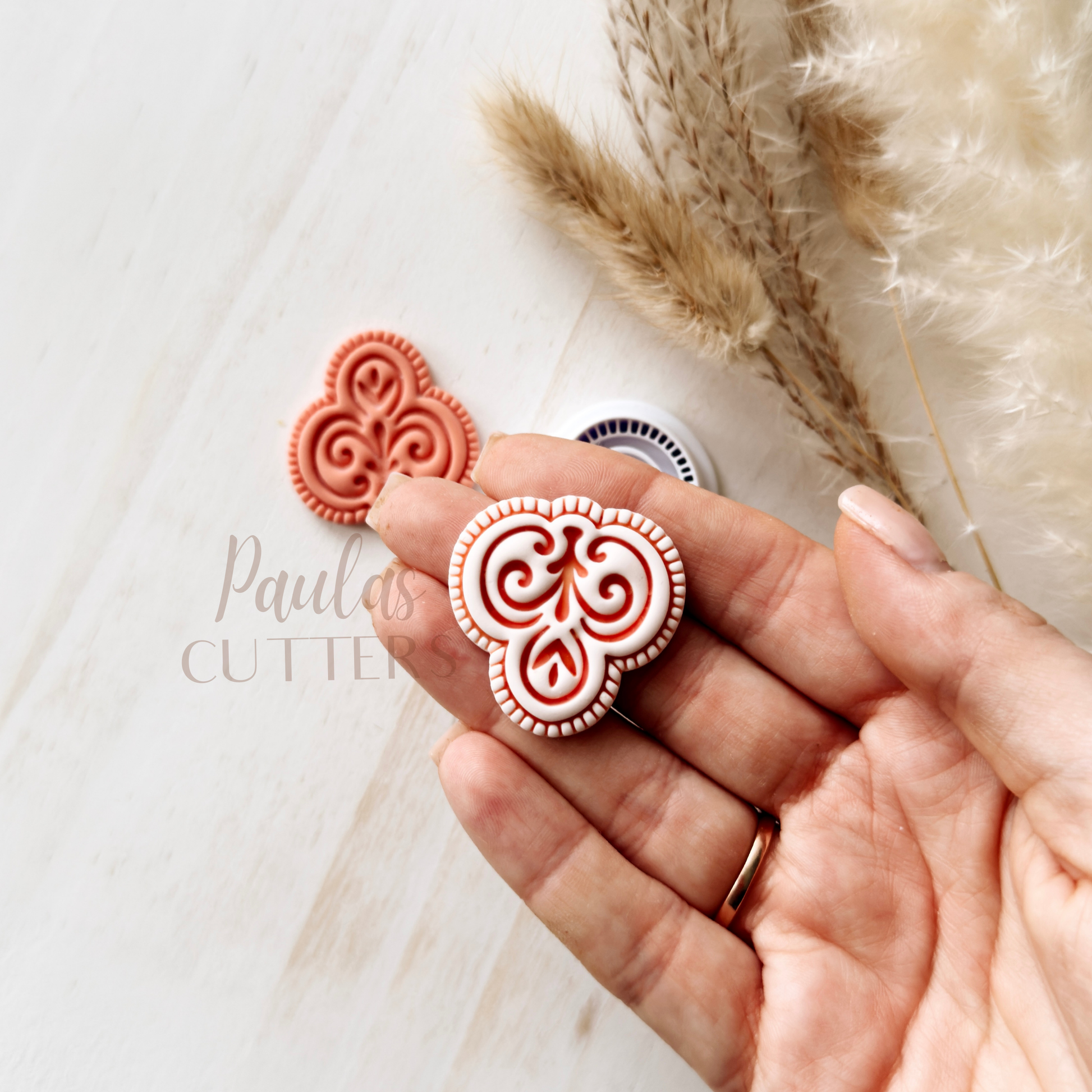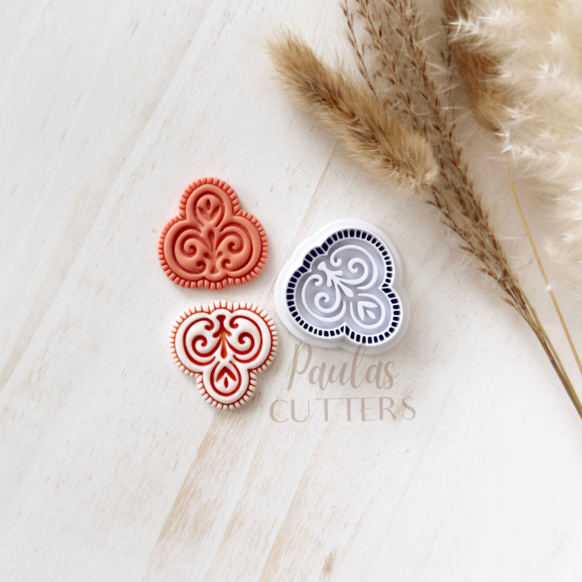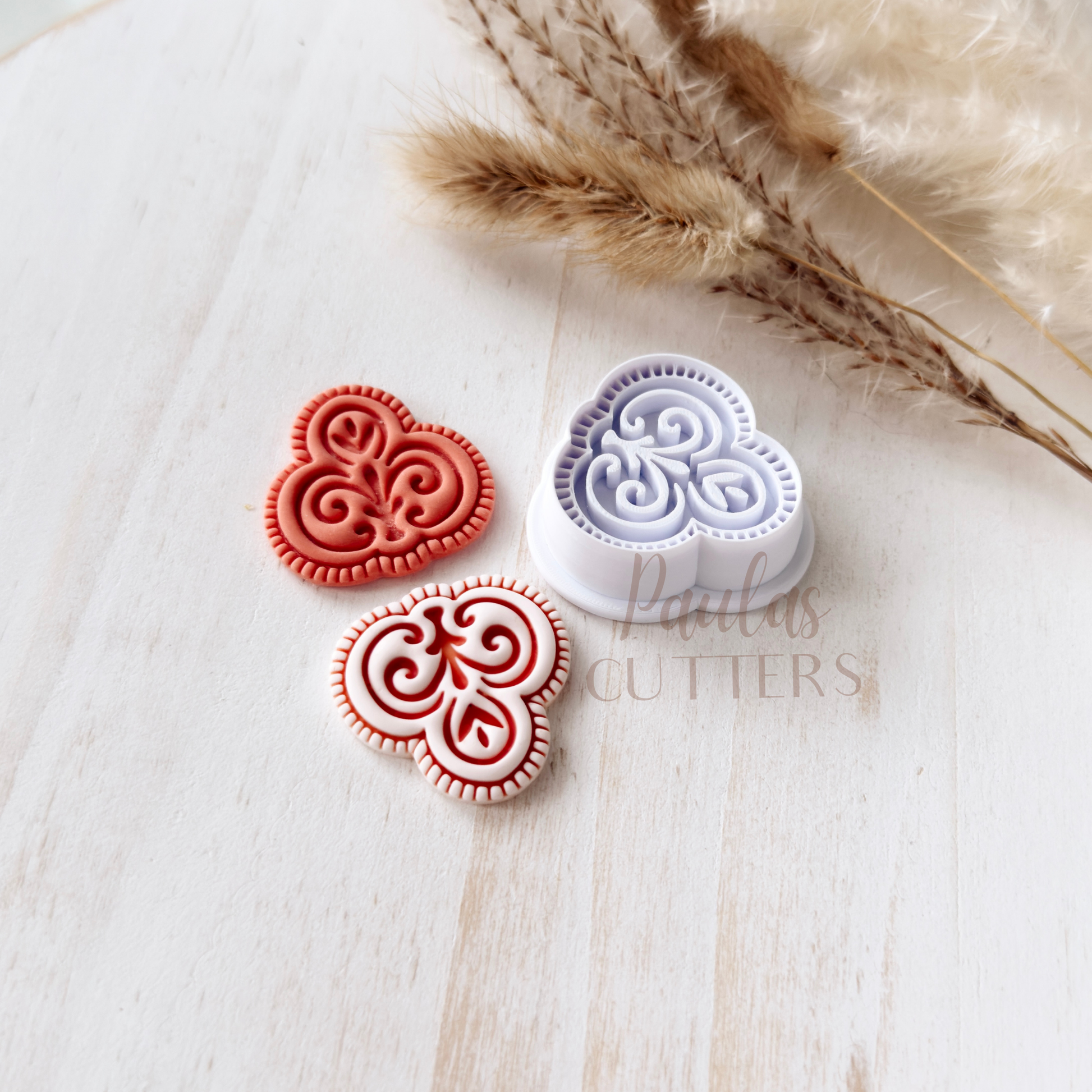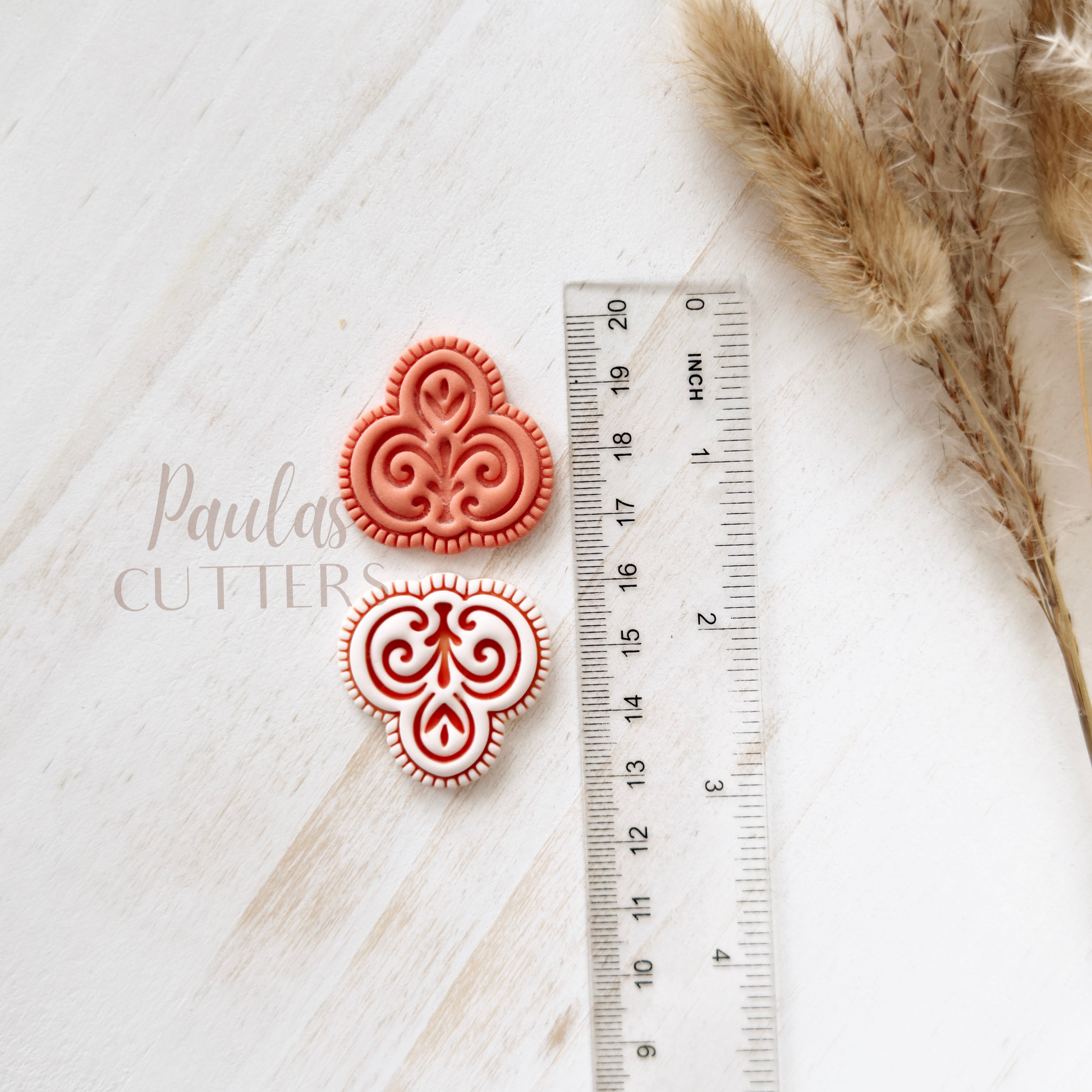 Gently press into clay, slightly wiggle the cutter and lift to remove. Edges can be smoothed with your fingertips or sanded after baking. I recommend sanding for the cleanest finish. Corn starch is a great way to help from clay sticking to your cutter, especially a cutter with small details. Working on a glass sheet or tile is recommended to keep the clay from sticking to your cutter, also.