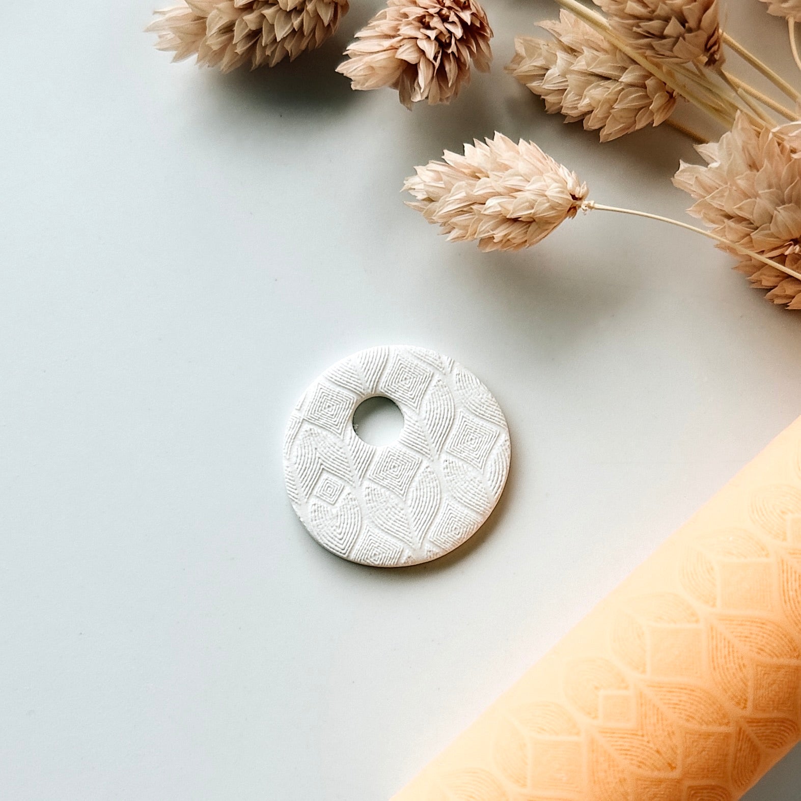 This clay tool texture roller is useful for polymer clay. You can make texture for your polymer clay to create pretty clay earrings or other jewelry. For easy working process (not stuck on clay) sprinkle corn flour on your roller and clay slab first.